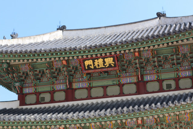 Bright and early we met in the lobby with all of our luggage because today is the day that we are leaving Seoul and heading south to Gyungju. We are storing most of our luggage at our hotel here in Seoul because we will be back on Thursday for our last two nights in Korea. We then loaded the bus and headed to Gyeongbok Palace. This was conveniently located across the street from our hotel but since we were heading out of town afterwards, we road the bus there.